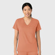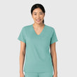A softly curved V-neck and a high-to-low hem give this women's tuck-in scrub top a flattering fit that's modern and fresh. Pockets make sure practicality stays a priority, including a chest pocket that has a bartack stitch for your pen, plus a back card pocket that zips shut to keep small items close and secure. A loop on both shoulders provides a place for your badge on whichever side you find more convenient. The modern fit strikes the perfect balance of letting you move freely without feeling like it's baggy or loose. Side hem vents open up the profile so you get full range of motion as you make your way through a shift. Tuck this scrub top into your favorite scrub pants or let it hang loose with its tailored drape. Built from a super soft and stretchy material, it's sustainably made - so while you're caring for your patients, you can know you're also doing your part to help protect the planet.