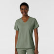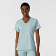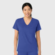 A softly curved V-neck and a high-to-low hem give this women's tuck-in scrub top a flattering fit that's modern and fresh. Pockets make sure practicality stays a priority, including a chest pocket that has a bartack stitch for your pen, plus a back card pocket that zips shut to keep small items close and secure. A loop on both shoulders provides a place for your badge on whichever side you find more convenient. The modern fit strikes the perfect balance of letting you move freely without feeling like it's baggy or loose. Side hem vents open up the profile so you get full range of motion as you make your way through a shift. Tuck this scrub top into your favorite scrub pants or let it hang loose with its tailored drape. Built from a super soft and stretchy material, it's sustainably made - so while you're caring for your patients, you can know you're also doing your part to help protect the planet.