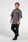 • You may be classically trained, but your world hasnt been black and white since before culinary school. Each plate that leaves your pass reflects your dynamic personality. Thats why you wear a Bristol. In four artful color combinations this short sleeve chef coat with black buttons and trim creates an energy all its own.