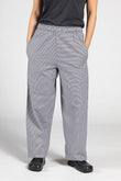 • The 80’s are over. The karate kid is all grown up and the mullet isn’t acceptable for business or party. So why are you still wearing baggy peg legged pants’ This classic styled chef pant features a timeless design with a conventional straight leg that fits you like a trouser, not a potato sack.
