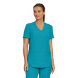 You will fall in love with this women's scrub top with its soft rib-knit side panels and neckband, which allow for comfort and ease of movement. Two front welt pockets and a badge loop provide plenty of storage and an on-seam zipper pocket keeps your items secure. Our modern tailored fit flatters your shape, while our moisture-wicking super stretch fabric provides the comfort and flexibility your work requires throughout the day.