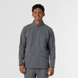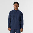 This men's scrub jacket is designed to provide versatile comfort and protection, whether you're commuting to and from your shift or working in a chilly facility. Crafted from a lightweight, water-resistant material, it offers reliable protection against light rain and moisture, ensuring you stay dry and comfortable. The fleece lining provides cozy warmth, making it an ideal layer for colder environments. Functionality is a key focus, with thoughtful details designed to enhance your workday. A badge loop at the shoulder ensures your ID is always visible and readily accessible. A convenient loop on the back allows for easy hanging inside a locker, keeping your jacket organized and off the floor. The cuffs feature hook-and-loop closures, allowing for an adjustable fit that provides a secure and comfortable seal against the elements. This scrub jacket is designed to be both practical and comfortable. The combination of water-resistant material and a fleece lining provides warmth and protection, while the thoughtful design features enhance convenience and functionality. It's a reliable and versatile piece that can handle the demands of your busy workday.