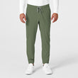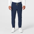 Iconic athletic styling meets modern functionality in this men's jogger pant. Wink's exclusive RENEW fabric has 46% PET Polyester made from recycled water bottles but has a sporty nylon hand and a subtle texture to it. We've carried the athletic styling even further with the jogger styling and the wide self-fabric elastic waistband. The hook and loop closing back pockets combine with the front slash pockets and side cargo pockets for a total of 8 pockets on these scrub pants. The dyed-to-match topstitching and other details provide great styling and functionality. You'll want a few pair of these scrub pants in your closet!