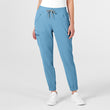 The RENEW jogger pant is super cute and sporty with plenty of pockets to help you keep things organized. The environmentally friendly fabric is a perfect blend of polyester, recycled polyester and spandex, plus it keeps 5 single-use plastic bottles out of the landfill so you can feel great about your purchase in more than one way! The whole design is flattering with both a flat front and a curved back yoke all the way to the self fabric elastic jogger style cuffs! This jogger style is meant to be slightly form fitting with a little extra space and give just where you need it! The grosgrain accessory trim is dyed-to-match on core colors, while it becomes a tonal accent piece on the fashion colors for this scrub pant. The doubled up front pockets feature one that has an invisible zipper and the single side cargo pocket is perfectly placed at fingertip length! The fabric has a subtle texture and a sporty and comfortable nylon hand to it. There are more ways to feel good about yourself when wearing these scrub pants!