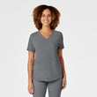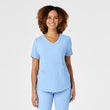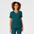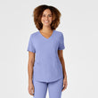 Wink RENEW is the latest innovation in sustainable scrubs. With the goal in mind to be a bit more kind to our planet the packaging is an earth-friendly biodegradable material, the hangtags are made from FSC certified paper, and the fabric is a recycled polyester fabric blend you're going to love the feel of! With extra details you've come to expect from Wink you're sure to find a fashionable favorite in this scrubs collection. The Women's V-Neck Top boasts a flattering curved v-neckline, two top-loading patch pockets with a layered invisible zip pocket on each. The grosgrain accessory loops inside the wearers right top-loading pocket will help you keep your gear organized in your pocket. The sleek shoulder badge loop keeps your badge in prominent sight while still being out of the way. The shape-enhancing princess seams and curved bottom hem combine for a stylish scrub top that accentuates all the right curves so you can look and feel confident in your uniform.