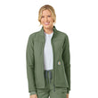 The Women's Carhartt Medical Rugged Flex Peak Modern Fit Bonded Fleece Jacket is an ideally affordable women's jacket from a brand you can trust for all of the best technology, durable and dependable products, and a fit and comfort like no other. The two large front patch side-entry pockets, the front patch pocket on the wearers left proudly features the classic Carhartt logo, plus there is an exterior welt zip pocket on the wearers left chest for storing smaller items securely. The jacket is a full front zip with a Carhartt logo zipper pull with a chin guard at the top of the zipper for comfort. It also features ribbed sleeve cuffs so you could pull you sleeves up if needed and they would stay put. The bungee ID loop is placed smartly along the shoulder seam so that you can use it if needed, but it goes virtually unnoticed if not in use. This women's jacket has earned the Rugged Flex stamp of approval with the perfect amount of stretch, and is treated with the popular and reliable HEIQ ECO DRY technology for an eco-friendly and durable water repellency that encourages the fluid to bead up and roll off before it gets the chance to soak in. The bonded fleece is comfortable and rugged while also being fashionable.