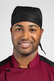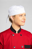 • A hip alternative to the conventional chef hat, with elastic back and ties for a more comfortable fit.