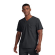 Modern Men's Fit V-Neck top has a double chest pocket, one with a zipper closure to keep your items readily available and secure. Wear this top tucked or untucked. Side hem slits for an easy fit and extra mobility.