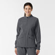 This women's scrub jacket is designed to provide versatile comfort and protection, whether you're commuting to and from your shift or working in a chilly facility. Crafted from a lightweight, water-resistant material, it offers reliable protection against light rain and moisture, ensuring you stay dry and comfortable. The fleece lining provides cozy warmth, making it an ideal layer for colder environments. Functionality is a key focus, with thoughtful details designed to enhance your workday. A badge loop at the shoulder ensures your ID is always visible and readily accessible. A convenient loop on the back allows for easy hanging inside a locker, keeping your jacket organized and off the floor. The cuffs feature hook-and-loop closures, allowing for an adjustable fit that provides a secure and comfortable seal against the elements. This scrub jacket is designed to be both practical and comfortable. The combination of water-resistant material and a fleece lining provides warmth and protection, while the thoughtful design features enhance convenience and functionality. It's a reliable and versatile piece that can handle the demands of your busy workday.