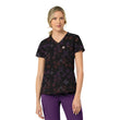 The Carhartt fabric technologies are an absolute expectation from the Carhartt wearer and this style is no different. This scrub top features the Rugged Flex® technology that offers stretch and comfort designed to move with you on the job. The flattering and slightly more feminine curved v-neckline combined with the princess seaming in both front and back offer a stylish look. The curved shirttail with side hem vents offers a tuck-in option or a fashionable untucked version of this shirt. The back features a vented mesh-lined panel for breathability and comfort. Of course, the badge ID loop in the shoulder seam, the layered chest pocket with a pen slot, and the dobby stretch fabric come together for a functional and comfortable scrub top. The style is offered in a variety of prints each season. 94% Polyester 6% Spandex