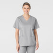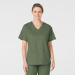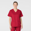 • The Women�s V-Neck top by WonderWORK offers a more comfortable, contoured fit that women want and need. Special motion stretch and high thread count fabric provide luxurious quality for a beautiful drape that moves with you. Featuring an updated design that includes a soft line V-neck and tailored silhouette with side vents, this top exceeds traditional industry standards with styling that flatters all sizes at exceptional value.