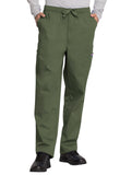 • A Men's Traditional fit natural rise, elastic waist pant with webbed drawstring also features a functional zip fly, four side cargo pockets, front angled pockets and a back patch pocket. Inseam 31".